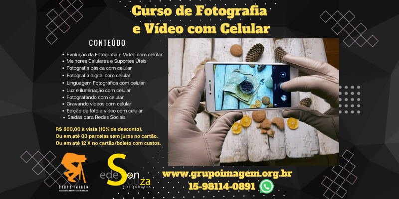 Não perca a oportunidade de aprimorar suas habilidades fotográficas e de vídeo! Inscreva-se agora para garantir sua vaga no Curso de Fotografia e Vídeo com Celular com o Professor Edeson Souza. Transforme seu celular em uma verdadeira câmera de criação!